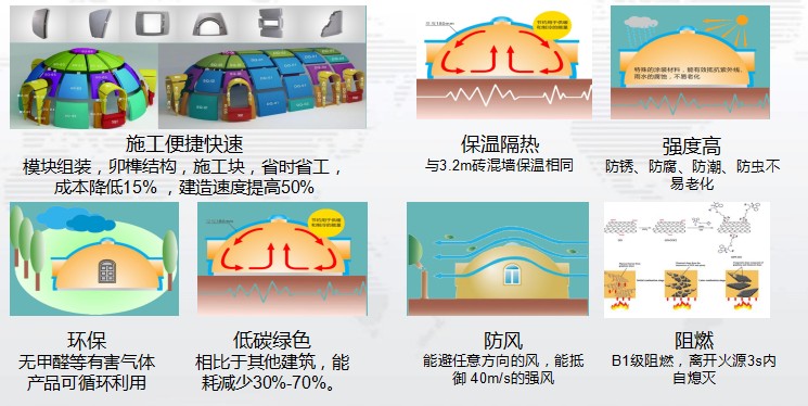 采用改性石墨烯EPS模塊材料建造,該材料具有施工便捷快速、強(qiáng)度高、保溫、隔熱、綠色、節(jié)能、環(huán)保、低碳、防風(fēng)、耐火、阻燃等優(yōu)點(diǎn)。