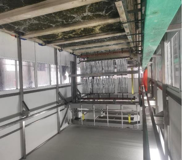7.機架:總體結構為高軌式結構,不銹鋼地腳螺栓支撐,無需預埋。所有槽體都放在機架上面槽體底部及地面做接水盤。機架安裝采用水平儀測試儀校正,提高安裝精度,使行車行駛平穩(wěn)。表面噴砂處理后以虹牌環(huán)氧樹脂油漆防腐。